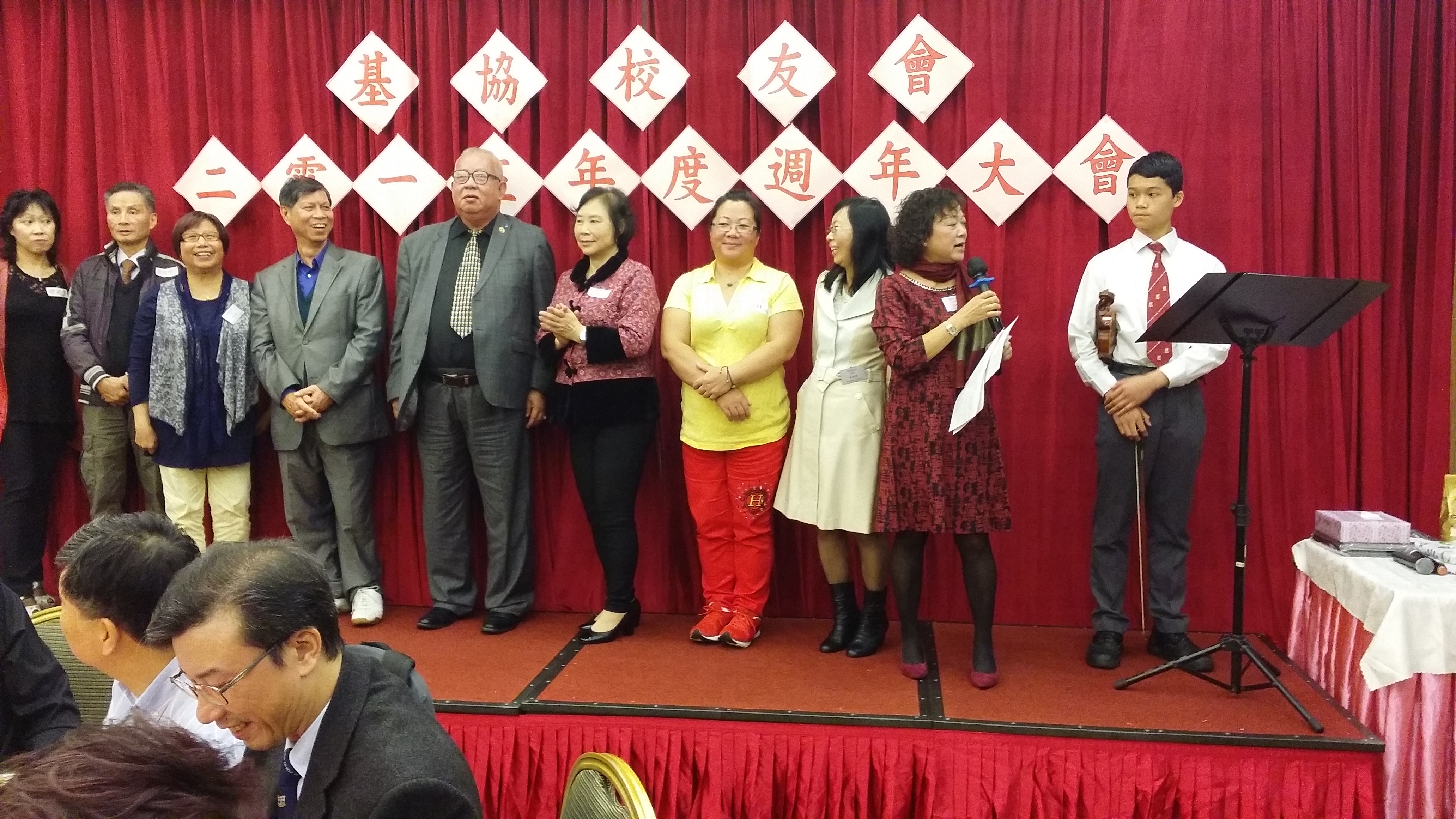 2015年12月:適逢周年大會,除了在學小學弟拉奏小提琴,全場高唱生日歌祝賀台上12月份生日壽星,喜氣洋洋。 |