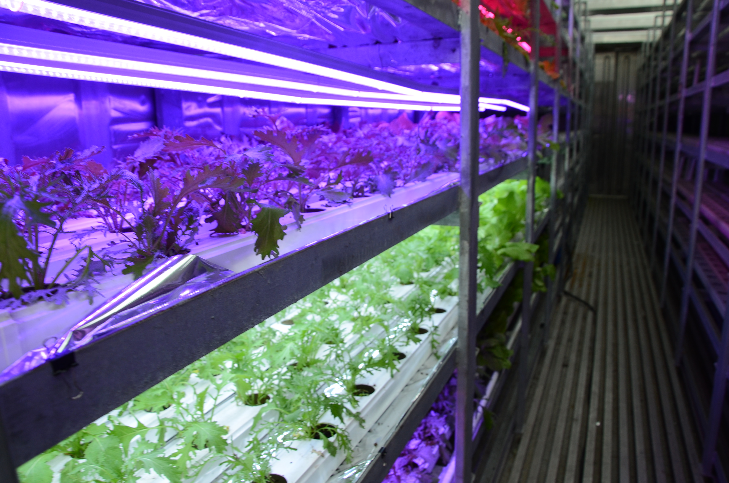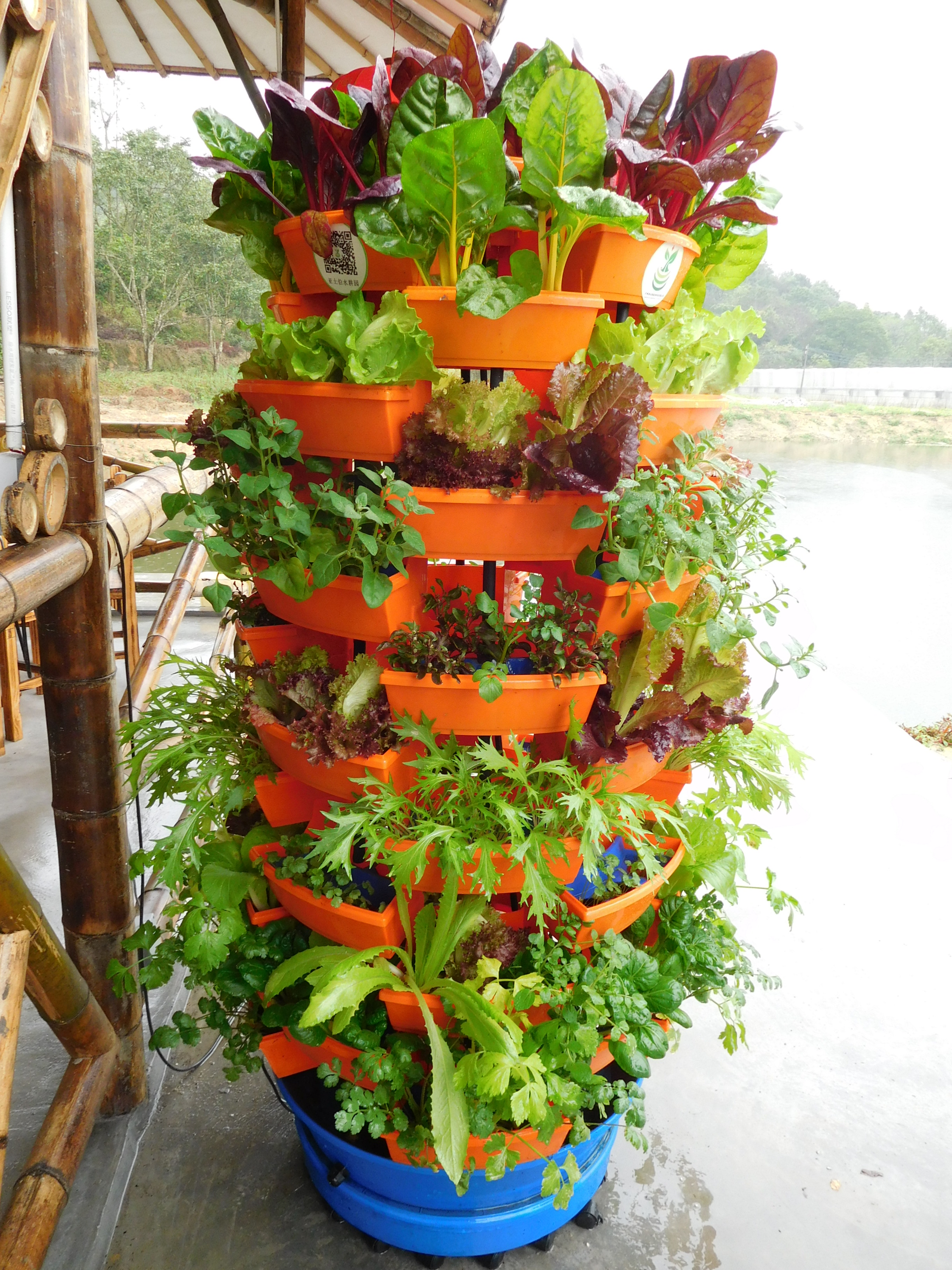 圖為小型垂直旋轉式水培種植系統及基地參觀留念合照。