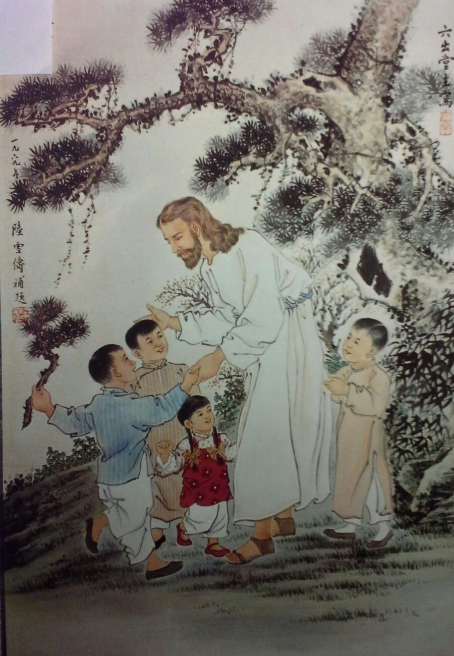 這幅用畫國畫傳統法兼西洋畫法融合而成的宗教畫,是陸瓞綿老師的父親陸雪儔早在一九五一年春天所作。