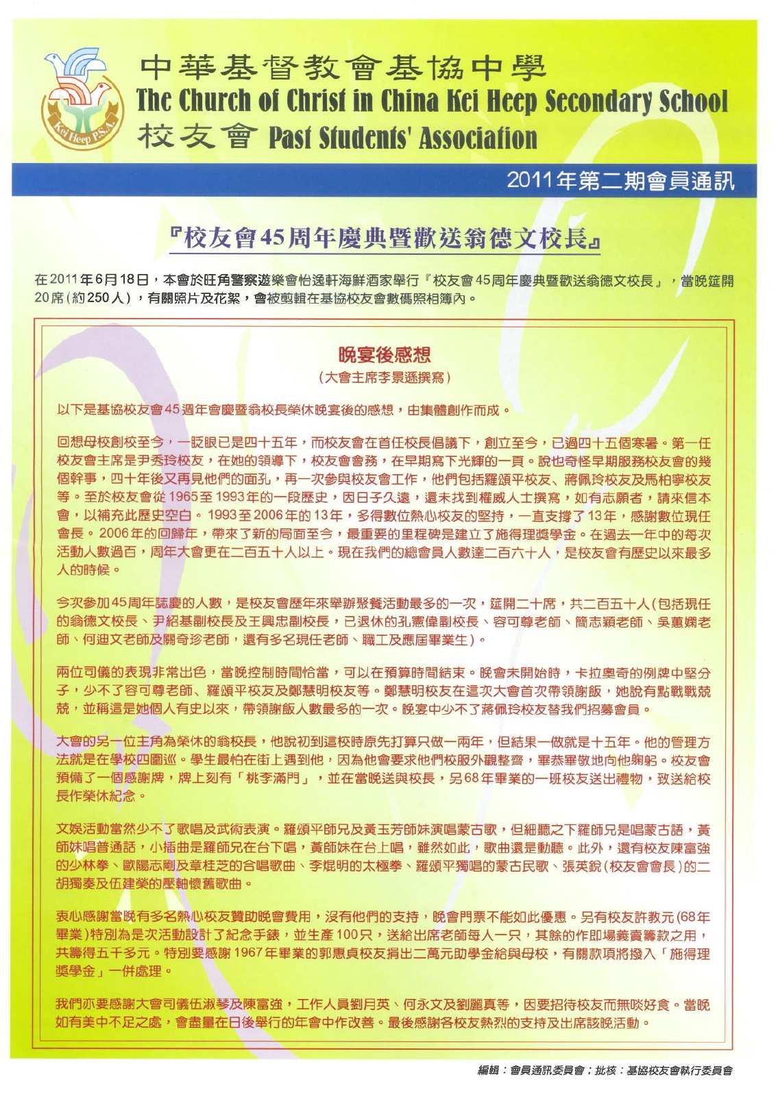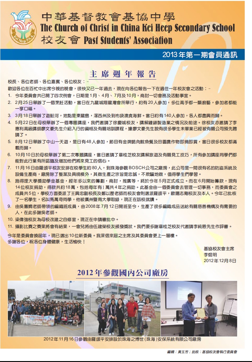 註: 2013年第一期以後,校友會通訊轉為電子網上版本,請參考本會網頁.