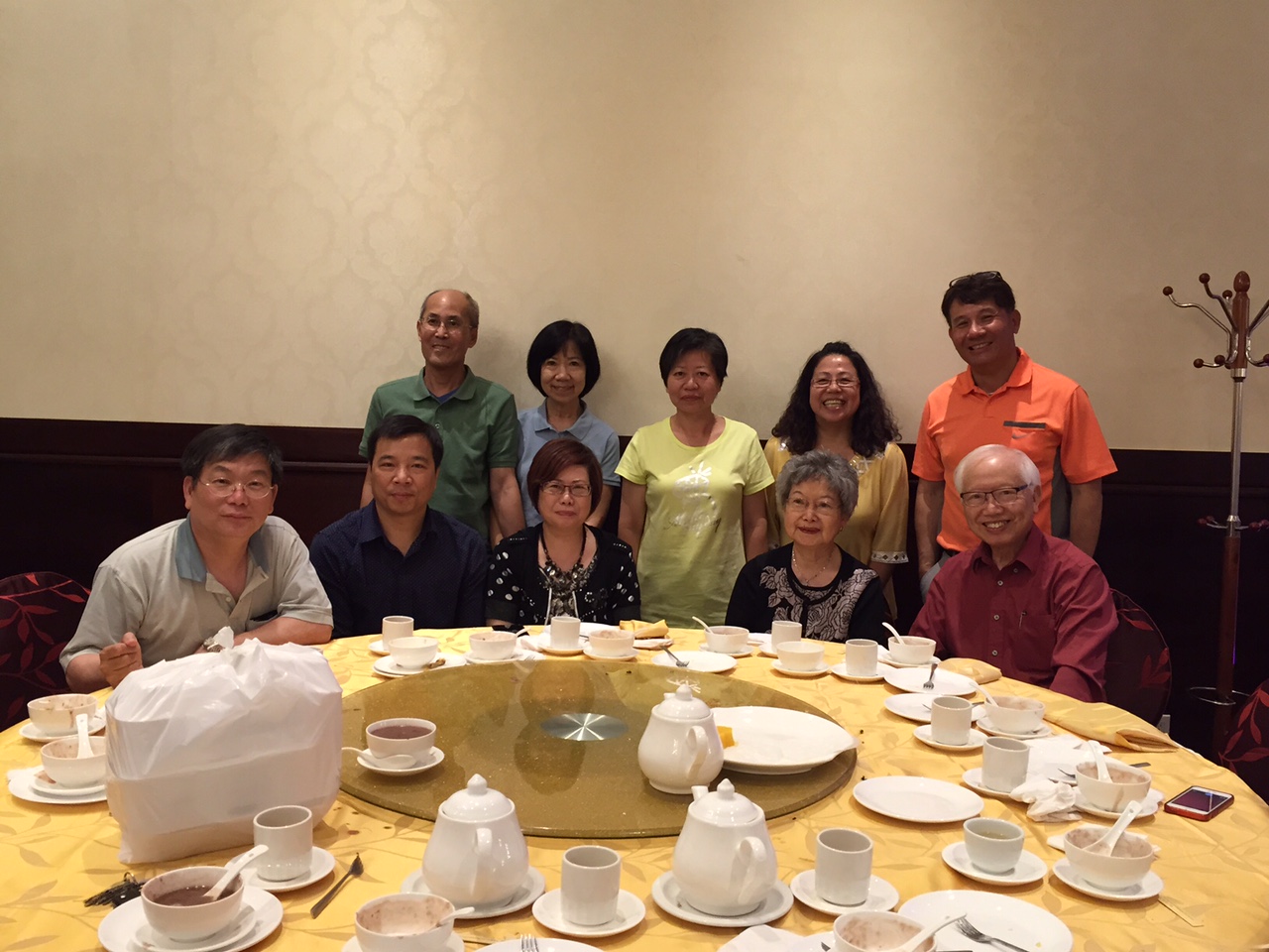 June 17, 2015 Gloria Tsang (1970) visiting Toronto. Dinner party with Schoolmates in Toronto, and old Principal Tso Wong Chiu Yuk and old teacher, Leung Yuk Wan |
